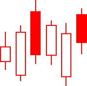 Пин-бар (свеча с длинной тенью) — сильный разворотный сигнал. Форма не критична, важен общий силуэт. После появления пин-бара движение, предсказанное RSI и дивергенцией, обычно начинается.